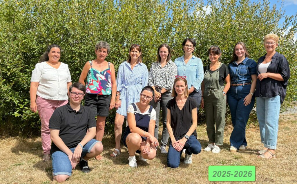 Bénédicte TRICOT (CM1-CM2), Anne-Claire Terrasson (CP-CE1), Catherine DUBOIS (ASEM), Mathilde LERSTEAU (CM1-CM2), Anne POIRIER (MS-GS), Valérie PIZON (TPS-PS), Enola CAILLAUD (CE1-CE2), Sylvie MENANTEAU (CE1-CE2), Nathan BOISSINOT (Etudiant), Eloïse NEAU (ASEM), Claire FUSEAU (CM1-CM2)